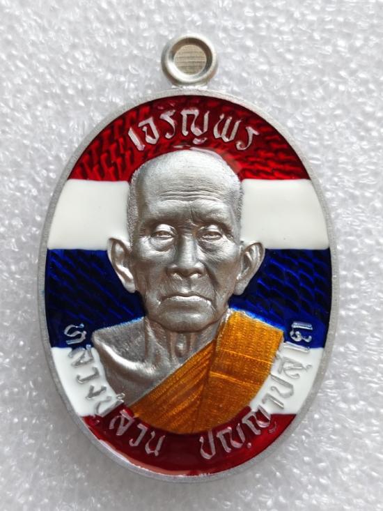 เหรียญเจริญพร รุ่นแรก หลวงปู่สวน วัดวังทรายพูน เนื้อปีกเครื่องบิน ลงยาธงชาติ ลงยาจีวร สภาพสวย พร้อมกล่องเดิมครับ