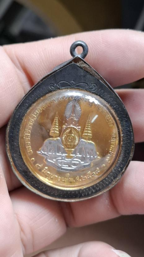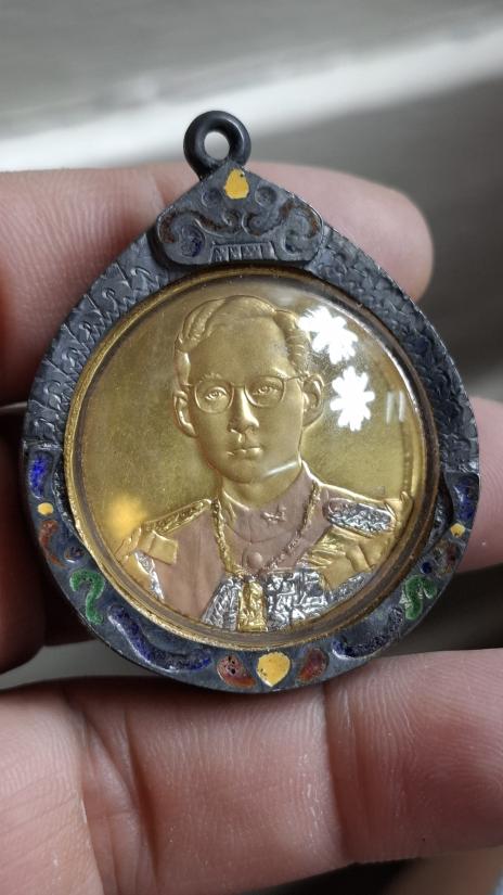 เหรียญเฉลิมพระเกียรติพระบาทสมเด็จพระเจ้าอยู่หัวรัชกาลที่ 9 ในโอกาสฉลองสิริราชสมบัติครบ 50 ปี (กาญจนาภิเษก) เมื่อปี พ.ศ. 2539 เนื้อ3K เลี้ยมเงินยกซุ้ม