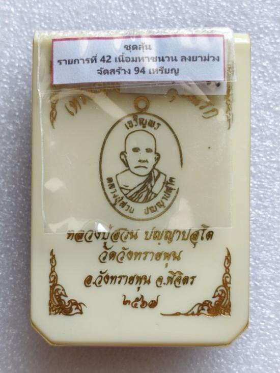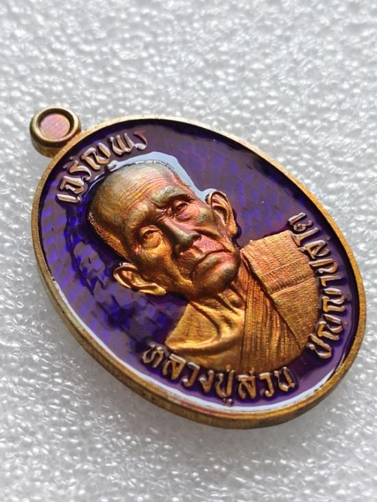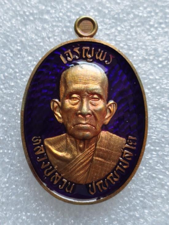 เหรียญเจริญพร รุ่นแรก หลวงปู่สวน วัดวังทรายพูน เนื้อมหาชนวน ลงยาม่วง สภาพสวย พร้อมกล่องเดิมครับ