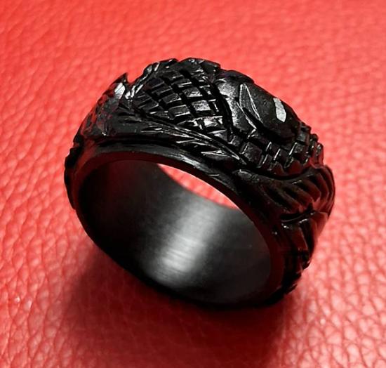 2.แหวนหยกดำแกะลายมังกร หยกพม่าแท้ 100 % (แสงส่องผ่าน) เส้นผ่าศูนย์กลาง 2.3 ซม. หนา 1.4 ซม. หายากวงใหญ่ๆ