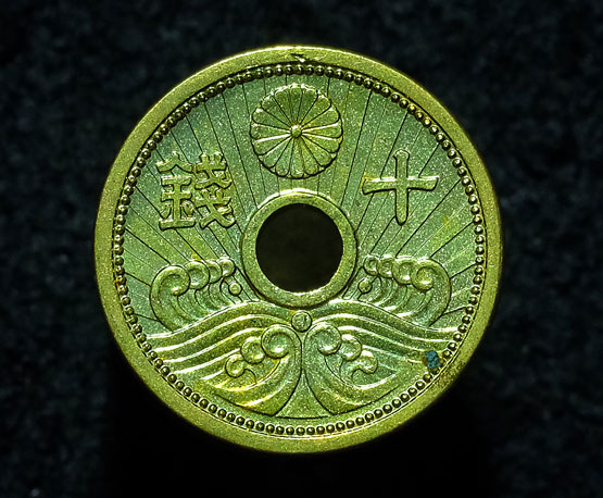 เหรียญกษาปณ์ญี่ปุ่น 10 sen สมัยโชวะ(Showa jidai - รัชสมัยสมเด็จพระจักรพรรดิฮิโรฮิโตะ ปีที่ 14) - ค.ศ.1939 รวม 10 เหรียญ UNC ไม่ผ่านใช้