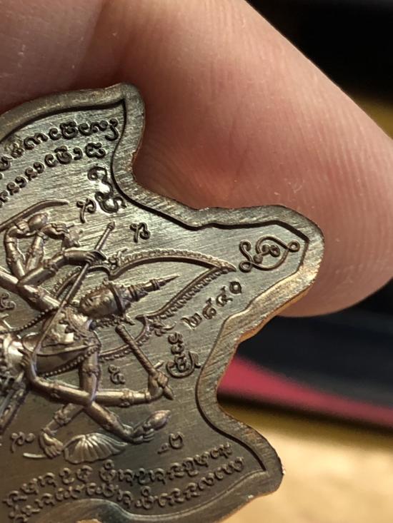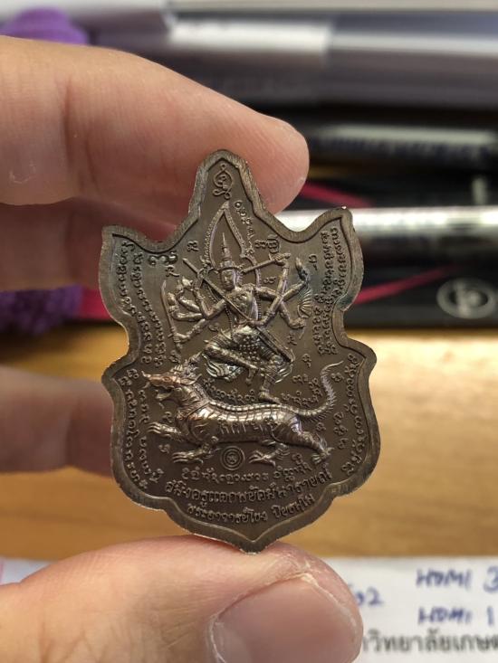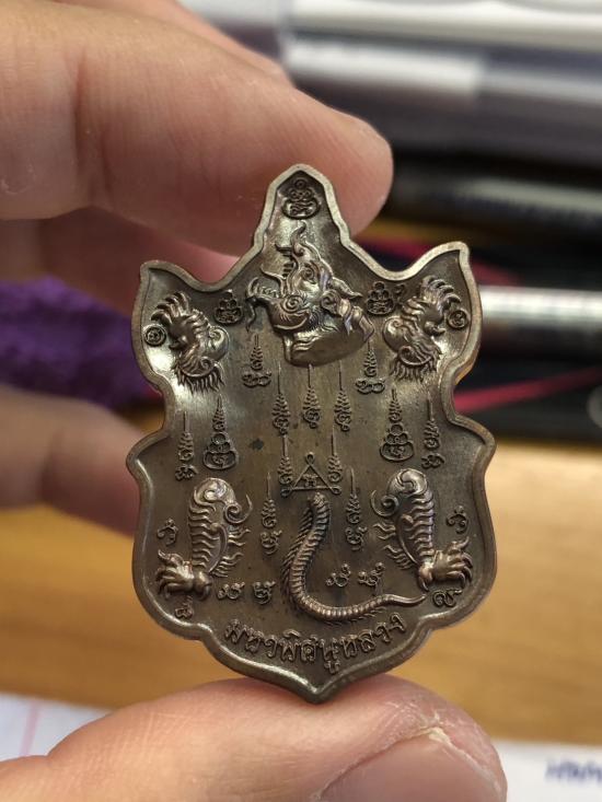 วัดใจ เหรียญมหาพิศนูหลวง รุ่น สมิงครูแตกพยัคฆ์นารายณ์ พระอาจารย์โขง วัดป่าอุณาโลม เนื้อทองแดงโบราณ หมายเลข ๒๘๔๐