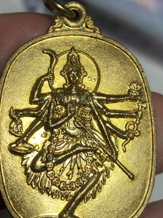 เหรียญเจ้าแม่กาลี หลังยันต์ฮินดู ไม่ทราบที่ มีตอกโค้ด เนื้อกะไหล่ทอง