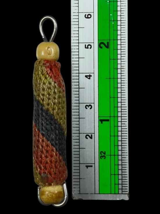 ตะกรุดไม่รู้ที่ น้ำหนักค่อนข้างตึงมือ ได้มาแบบนี้วัดใจ 100 แดงครับ |