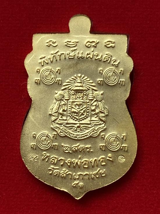 เคาะเดียวแดง หลวงปู่ทวด อาจารย์ทอง รุ่นพิทักษ์แผ่นดิน เนื้อชุบทอง หัวขีดกรรมการ |