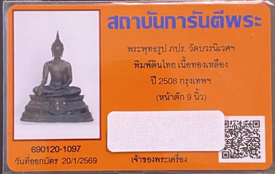 Limited edition พระบูชา (ภปร.) รุ่นแรกวัดบวร พิมพ์ ดินไทย ปี2508 "หน้าตัก 9นิ้ว" + บัตรรับรอง g pra ครับ