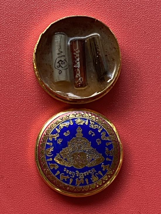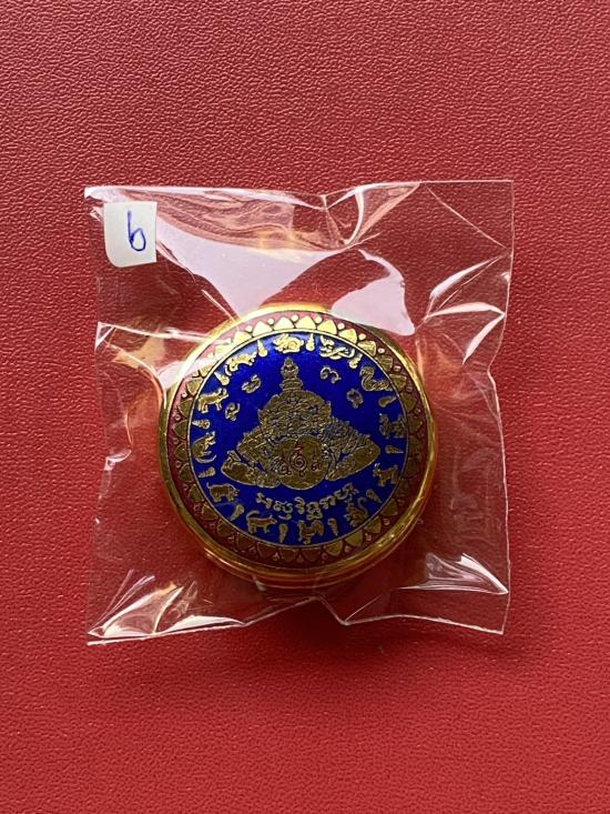 เนื้อ โลหะชุบทองลงยาสีน้ำเงิน ขอบสีแดง ขนาด3.2ซม