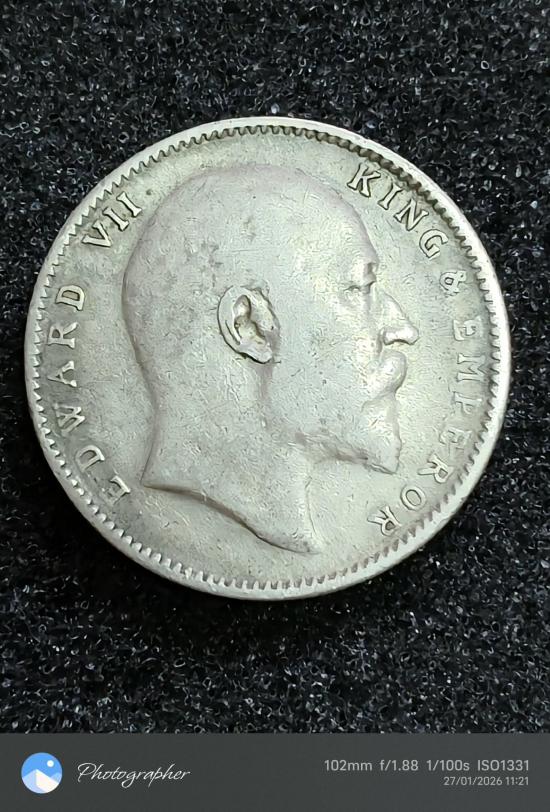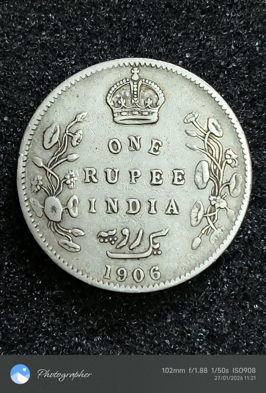 เหรียญเงิน 1 รูปี ปี 1906 เนื้อเงิน 90 % นำ้หนัก 11.53 g เก่าน่าสะสม แท้รับประกัน