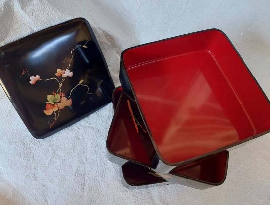 ***วัดใจ***กล่องไม้เคลือบแล็กเกอร์สีดำสไตล์ญี่ปุ่น แบบซ้อนกัน 3 ชั้น จูบาโกะ (Jūbako)