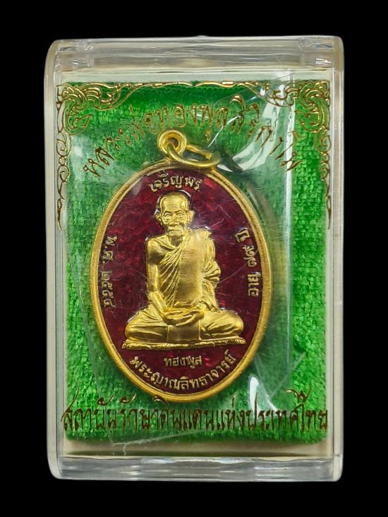 เหรียญเจริญพรบนหลวงพ่อทองพูล สิริกาโม รุ่นสถาบันรักษาดินแดนแห่งประเทศไทย เนื้อกะไหล่ทองลงยาแดงสวยมากกล่องเดิมวัดใจ 100 แดงครับ