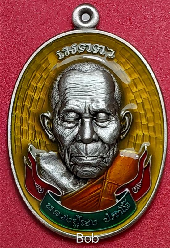 หลวงปู่เฮง ปภาโส รุ่นเมตตา เนื้ออัลปาก้า ลงยาพื้นเหลือง ลงยาจีวร ตอกเลข 15 เคาะเดียว