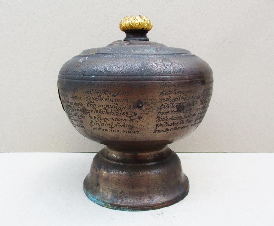 บาตรมนต์มีฝาครอบ จารึกพระคาถาชินบัญชรและอักขระยันต์