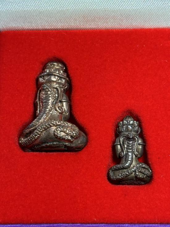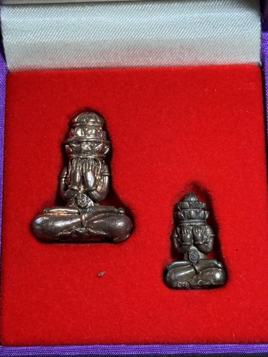 ปิดตาพังพะกาฬ เนื้อทองผสม ชนวนคันฉ่องสุริยัน-จันทรา รุ่น บูรพาจารย์ สัมฤทธิ์ สิทธิโชค มหามงคลบารมี ครับ เป็นของ กองทุนหลวงพ่อปาน โสนันโท พ.ศ. 2550 มาเป็นคู่ |