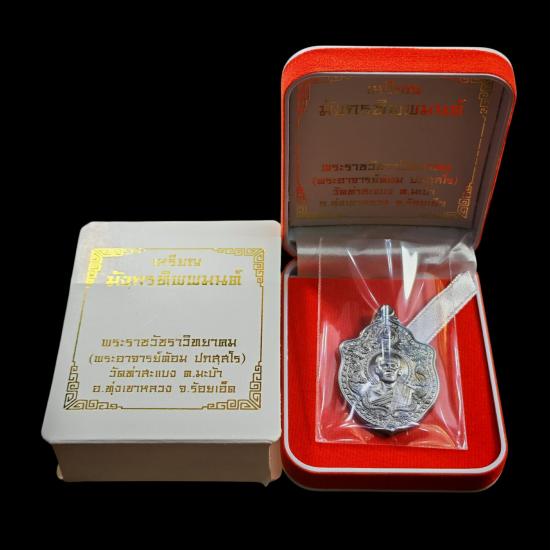 เหรียญทิพพมนต์มังกรคู่ พระอาจารย์ต้อม วัดท่าสะแบง เนื้อเหล็กเปียก ต๊อกโค้ต 285 พร้อมกล่องเดิม