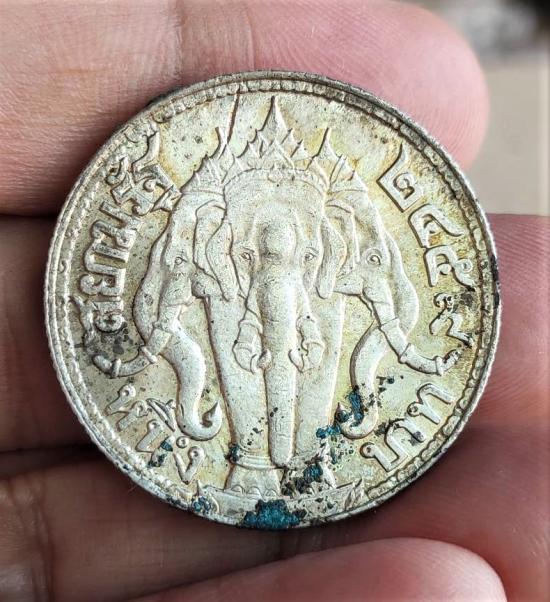 เหรียญเงินรัชกาลที่ 6 หลังช้างสามเศียร 1 บาท พ.ศ.2459 สวย