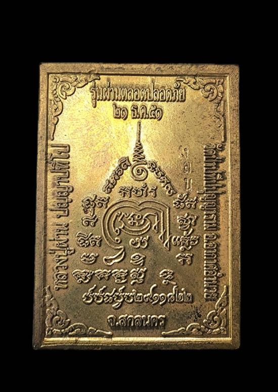เหรียญหลังโต๊ะหมู่ ผ่านตลอดปลอดภัย หลวงปู่ผ่าน ปัญญาปทีโป ปี 2551 เนื้อทองฝาบาตร