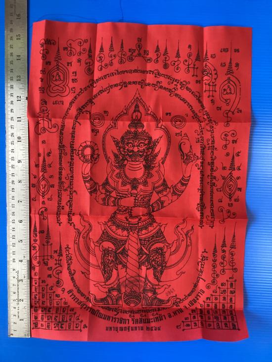 ผ้ายันต์ ท้าวเวสสุวรรณโณมหาราชิกา มหาบุญกฐินปี64 ครูบาวิรุต วัดสันมะเหม้า จ.เชียงราย สีแดง ขนาด 11 นิ้ว x 15.5นิ้ว