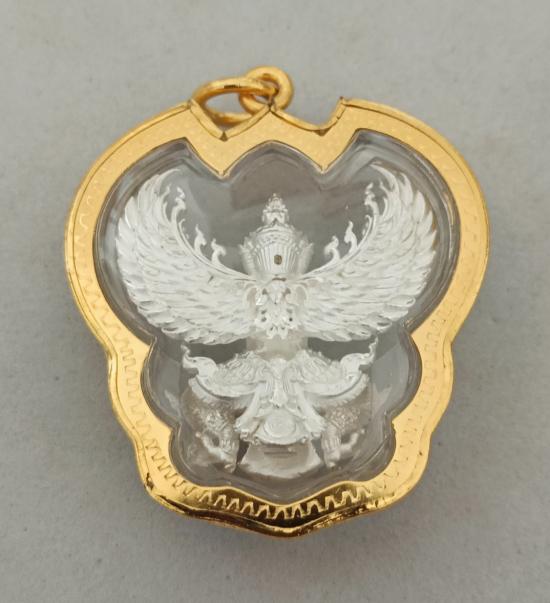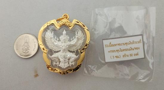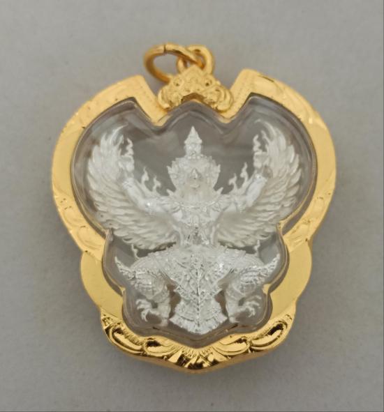 วัดใจเคาะเดียวแดงจ้า พญาครุฑ มีโชคพันล้าน หลวงพ่อโชคชัย วัดน้ำดิบ เนื้อมหาชนวนชุบเงินจิวเวลรี่ เลี่ยมกรอบชุบทองไมครอน เคาะเดียวแดงจ้า