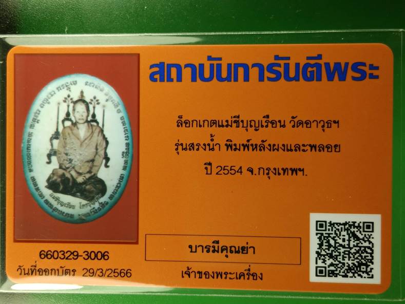 ล็อคเก็ตคุณแม่บุญเรือน โตงบุญเติม วัดอาวุธ รุ่นทรงน้ำ ปี2554 ของคุณแม่บุญเรือน ของดีครับ ราคาขึ้นตลอดและหายากแล้ว