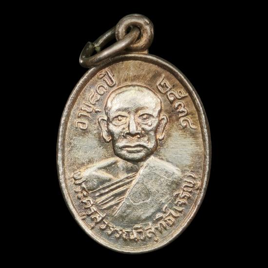 เหรียญเนื้อเงิน พิมพ์เล็ก พระครูสุวรรณวิสุทธิ์ (หลวงพ่อเจริญ) วัดธัญญวารี (วัดหนองนา) สุพรรณบุรี รุ่นอายุ ๘๑ ปี ๒๕๓๔ |