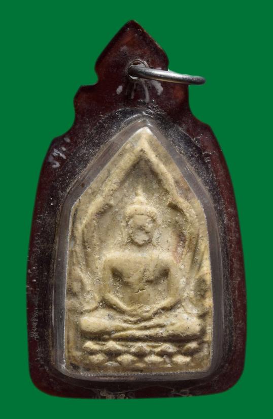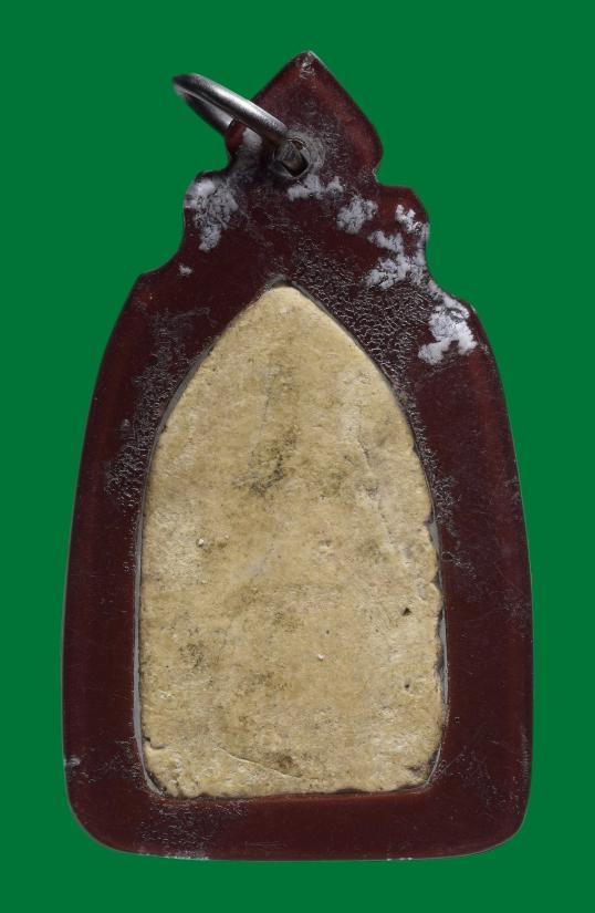 เลี่ยมเดิมสุดคลาสสิค ด้านหลังยังเห็นตรายางเลือนๆ พระผงพิมพ์ซุ้มเรือนแก้วปางสมาธิ เนื้อผงวิเศษ ๑๐๘ ออกวัดสรรเพชร เข้าพิธีปลุกเสกรวมเมื่อวันที่ ๕ ธันวาคม ๒๕๑๓ พระผงพิมพ์นี้
