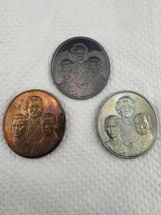 เหรียญที่ระลึกเฉลิมพระเกียรติ สมเด็จพระศรีนครินทราบรมราชชนนี มี 3 เหรียญ