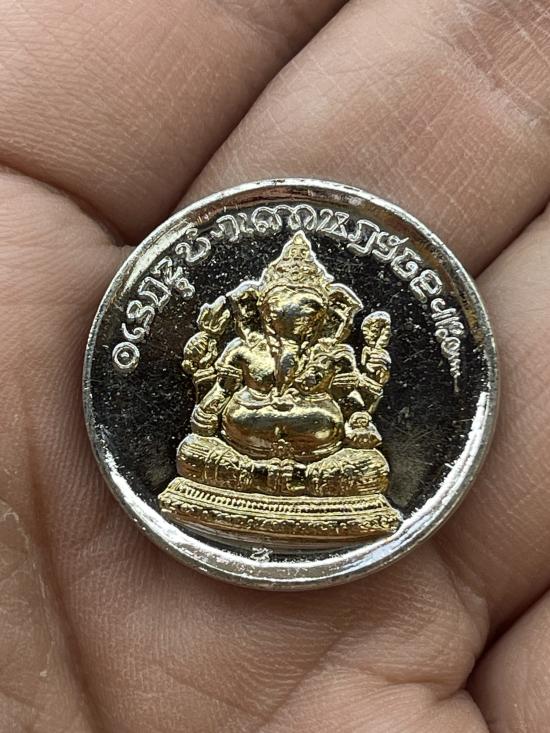 เหรียญพระพิฆเนศ หลังยันต์ตรีนิสิงเห มูลนิธิพระพิฆเนศ โบสถ์พราหมณ์ ปี37 เนื้อกะไหล่เงินหน้ากะไหล่ทอง