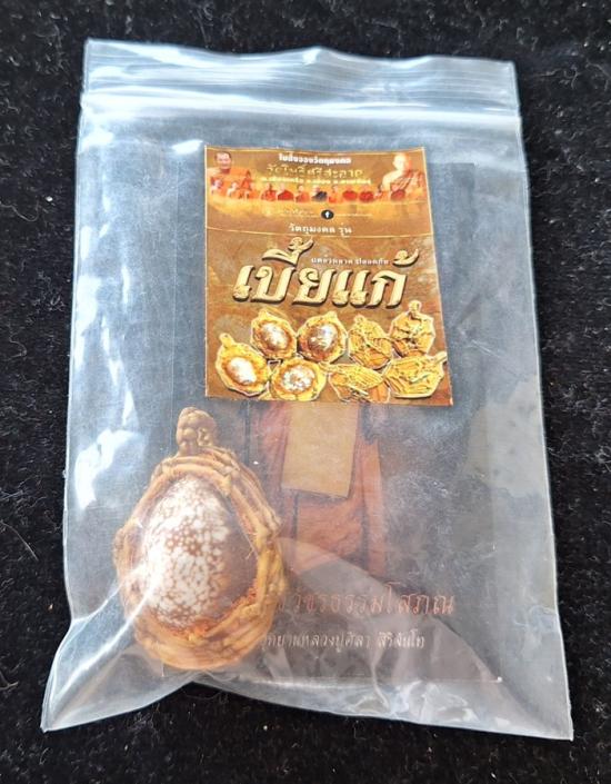 ชื่อพระเครื่อง เบี้ยแก้ หุ้มจีวร ถักเชือก หลวงปู่ศิลา วัดโพธิ์ศรีสะอาด มีแผ่นเลขกำกับ ฝังตะกรุดทองเหลือง พร้อมใบคาถา ปี2567