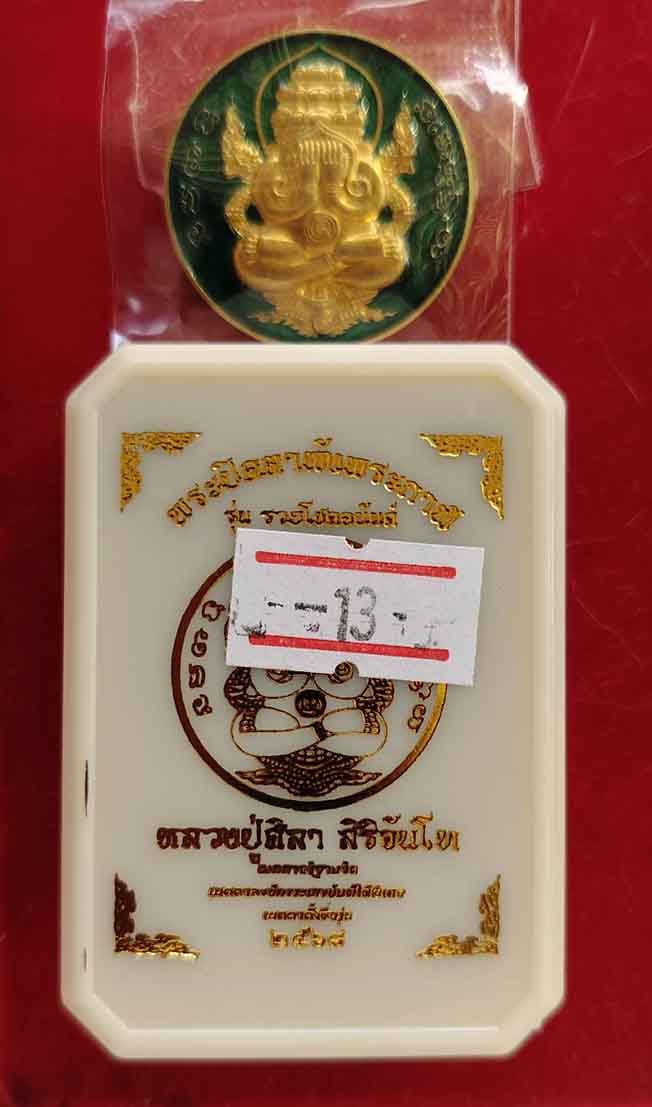 พระปิดตาพังพระกาฬ หลวงปู่มหาศิลา สิริจันโท รุ่นรวยโชคอนันต์ เนื้อทองฝาบาตร ลงยาเขียว no.1185 แยกจากชุดกรรมการลงยา กล่องเดิม สร้าง 1200 องค์ หลวงปู่ศิลา เมตตาเขียนยันต์ อักขระ ตั้งชื่อรุ่น และอธิฐานจิต พระปิดตาพังพระกาฬ ปี2568 |