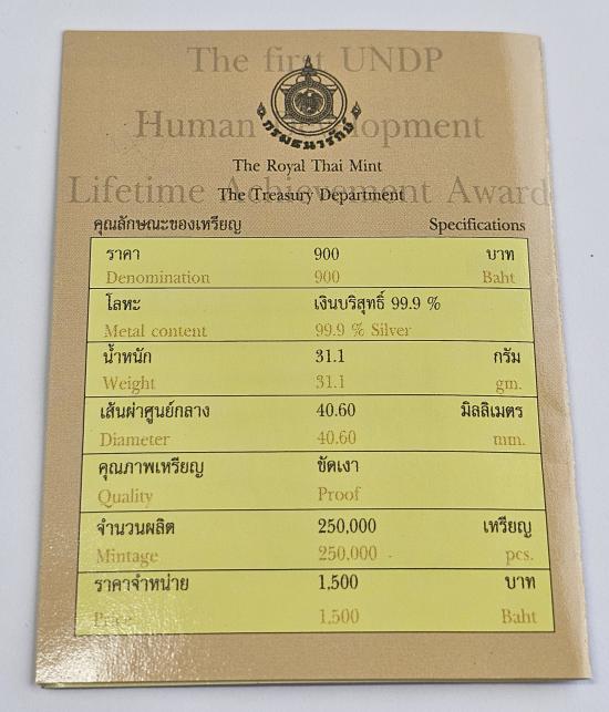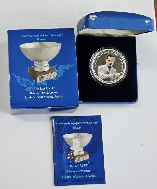 เหรียญเงินในหลวงรัชกาลที่ 9 ราคาหน้าเหรียญ 900 บาท เนื้อเงินขัดเงา รางวัลความสำเร็จสูงสุดด้านการพัฒนามนุษย์ ปี2549 สภาพสวยมาก พร้อมกล่องใบเซอร์ครับ
