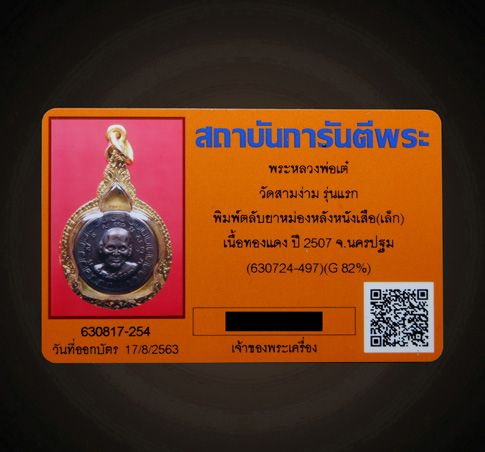 หนึ่งในตำนาน ตลับยาหม่องหลวงพ่อเต๋ หลังหนังหน้าผากเสือ รุ่นแรก ปี 2507 เลี่ยมทอง + บัตรรับรอง GPra