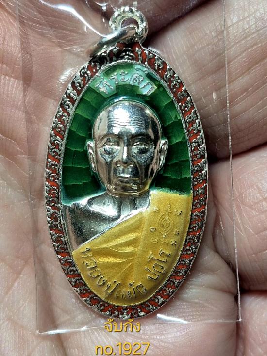 เหรียญใบขี้เหล็กหลวง หลวงปู่แผ้ว ปวโร เนื้อเงินลงยาเขียว หมายเลข1927 พระสวยสมบูรณ์ครับ