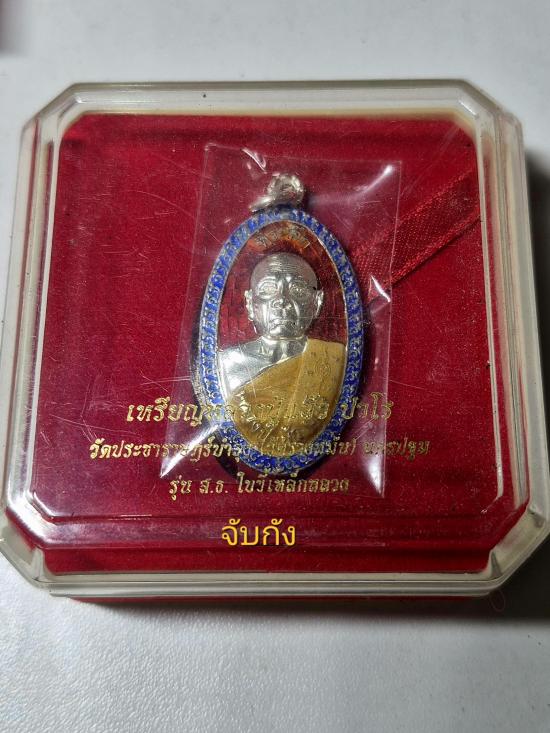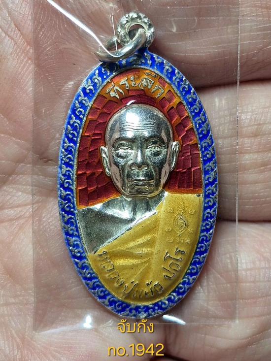 เหรียญใบขี้เหล็กหลวง หลวงปู่แผ้ว ปวโร เนื้อเงินลงยาแดง หมายเลข1942 พระสวยสมบูรณ์ครับ