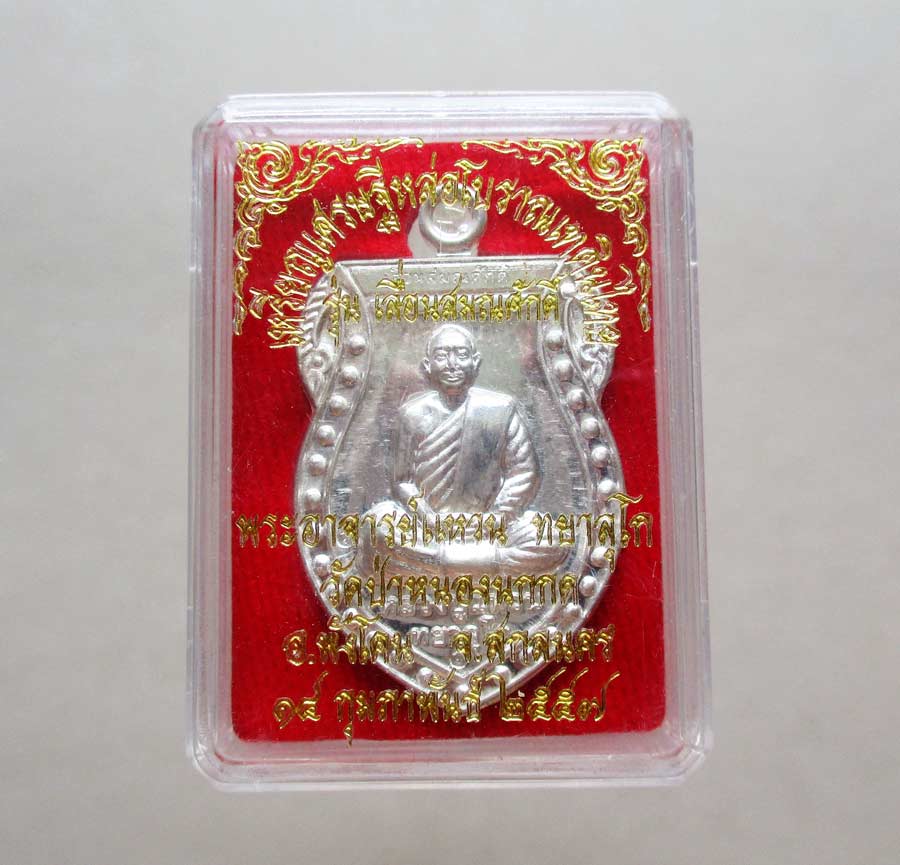 เหรียญเศรษฐีหล่อโบราณเทดินไทย รุ่นเลื่อนสมณศักดิ์ พระอาจารย์แหวน ทยาลุโก วัดป่าหนองนกกด จ.สกลนคร พ.ศ.2557 เนื้อเงินผิวกระจก ตอก 3 โค๊ต ตอกเลข จารยันต์ นอนกล่องเดิม !!