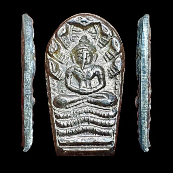 พระปรกใบมะขามรุ่นนี้มี เนื้อทองคำ,เงิน, นวโลหะ, และ ทองแดงรมดำ