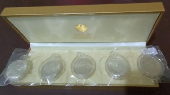 เหรียญเงิน ร9 ชุดปัจภาคีพิมพ์ใหญ่ จำนวน5เหรียญ เลี่ยมเก็บผิว