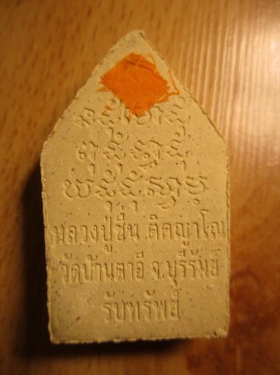 หลวงพ่อชื่น วัดตาอี พระขุนแผนผงสมเด็จรุ่น รับทรัพย์ เนื้อพุทธคุณผงเกสรผสมอิธิเจ ฝังพลอยตะกรุด มีจีวรด้านหลัง พระขุนแผน รุ่นรับทรัพย์ ปี 2545 (ปลุกเสกพร้อมกับขุนแผนหลังม้าเสพนาง) เนื้อผงอิทธิเจ ฝังตะกร