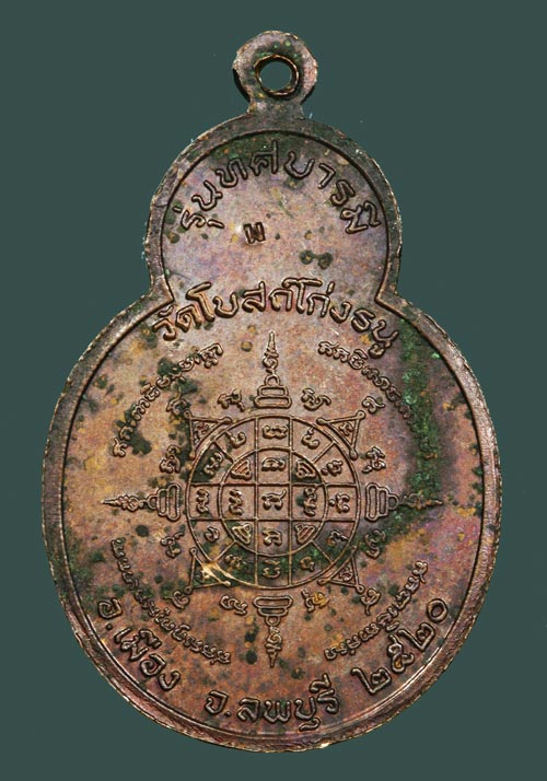 เหรียญรุ่นทศบารมี หลวงพ่อพริ้ง วัดโบสถ์โก่งธนู จ.ลพบุรี ปี 2520 เนื้อทองแดง ตอกโค๊ด "พ" ผิวหิ้ง |