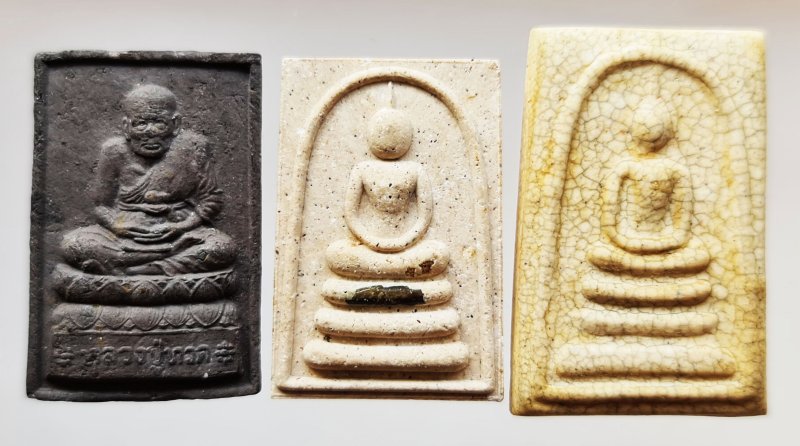 << วัดใจ >> พระสมเด็จหลวงปู่ทวด รุ่นโพธิสัตโต ( พิมพ์ใหญ่ ) + พระสมเด็จฝังตะกรุด โรยพระธาตุ หลังสมเด็จโต วัดหลักเมือง + พระสมเด็จวัดระฆัง แตกลายงา รุ่นM16 ปี46 พิมพ์ใหญ่ทรงนิยม เกศทะลุซุ้ม รวม 3 องค์ |