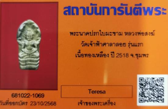 ปรกใบมะขาม รุ่นแรก เนื้อทองเหลือง หลวงพ่อสงฆ์ วัดเจ้าฟ้าศาลาลอย ชุมพร ปี2518 พร้อมบัตรรับรอง