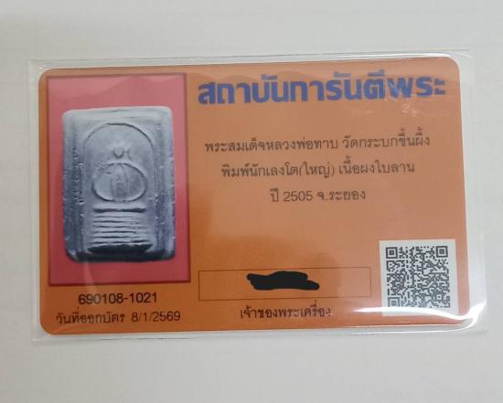 พระสมเด็จหลวงพ่อทาบ พิมพ์นักเลงโต(ใหญ่) พร้อมบัตรการันตีพระ