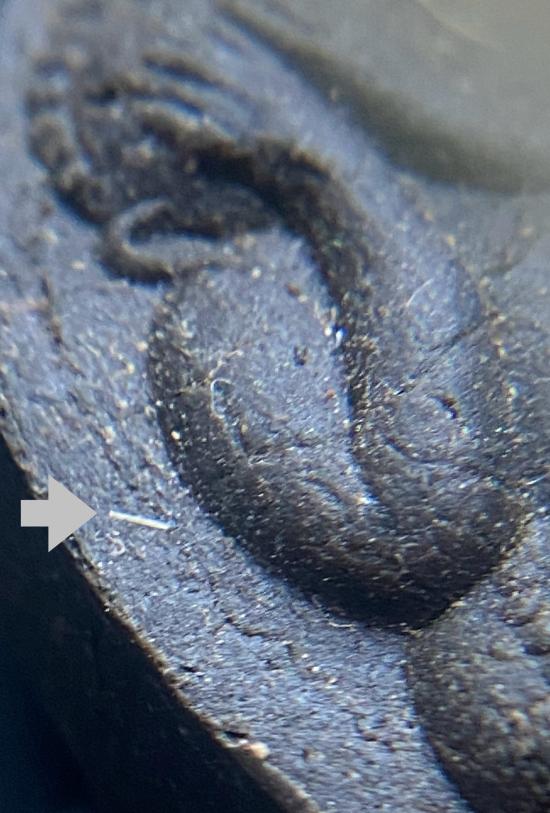 เนื้อผงใบลานดำปลดหนี้_ ตะกรุดเงิน_พิมพ์หนา_มีเส้นเกศา_ |