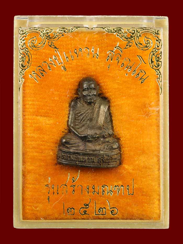 วัดใจ รูปหล่อหลวงปู่แหวน วัดดอยแม่ปั๋ง รุ่นสร้างมณฑป ปี2526 เนื้อนวะโลหะ กล่องเดิม สวยเดิม