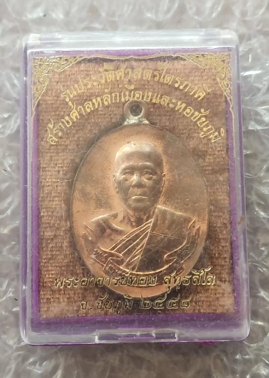 เหรียญห่วงเชื่อม หลวงพ่อทอง วัดพระพุทธบาทเขายายหอม รุ่นประวัติศาสตร์ไตรภาคี ปี 58 จ.ชัยภูมิ เนื้อทองแดง |