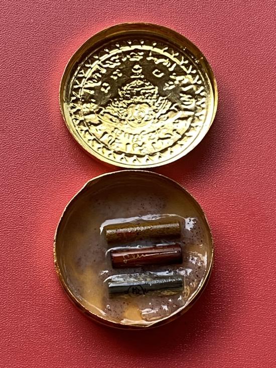 เนื้อ โลหะชุบทองลงยาสีดำขอบสีแดง ขนาด 5ซม