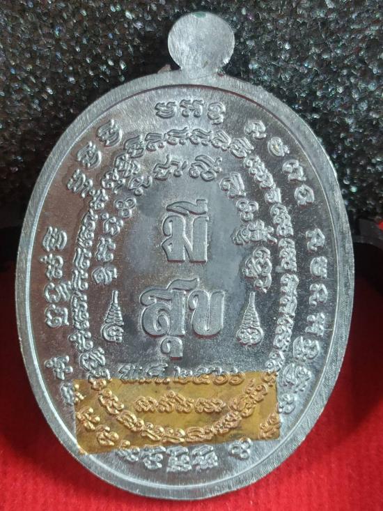 เหรียญมีสุข หลวงปู่โต๊ะ ปี66 เนื้อดีบุก หน้าทองทิพย์ หลังฝังทองแดง เลข8 ออกวัดถ้ำสิงโตทอง จ.ราชบุรี กล่องเดิม