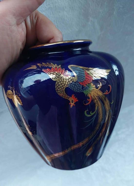 ***วัดใจ***แจกันเซรามิกญี่ปุ่น ทรงฟักทอง ของสะสม ปากกว้าง 3.5 นิ้ว สูง 6.5 นิ้ว ลายรูปนกฟีนิกซ์ เส้นทอง