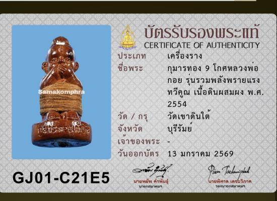 กุมารทองหลวงพ่อกอย วัดเขาดินใต้ ปี 2554 พิมพ์เล็ก พร้อมบัตรรับรองสมาคม