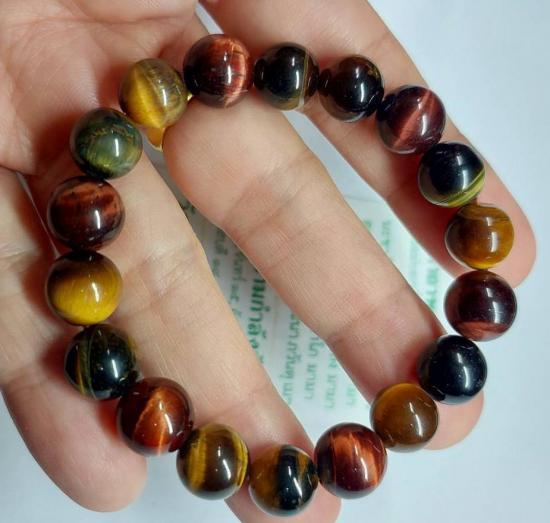 ***วัดใจ***สร้อยข้อหินไทเกอร์อาย 3 ทหารเสือ 10 มิลพร้อมการ์ดคาถา คุณแม่บุญเรือน โตงบุญเติม วัดอาวุธฯ