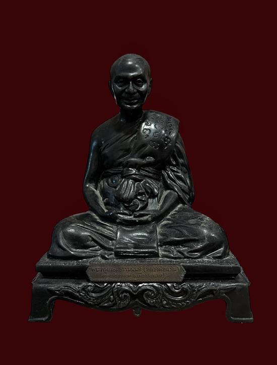 พระครูเกษมธรรมนันท์ (หลวงพ่อแช่ม) วัดดอนยายหอม อ.เมือง จ.นครปฐม ขนาดหน้าตัก 5 นิ้ว ฐานกว้าง 5.5 นิ้ว สูง 7 นิ้ว ใต้ฐานมีรอยจารยันต์ด้วยหมึก สภาพสวยมาก ผิวหิ้งเดิม ๆ